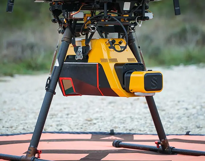 Der YellowScan Voyager kann auf Flugzeugen mit leichter Besatzung, Hubschraubern oder UAV-Plattformen montiert werden und ist die LiDAR-Lösung mit der höchsten Reichweite und einer Flughöhe von bis zu 440 m (1440 Fuß).