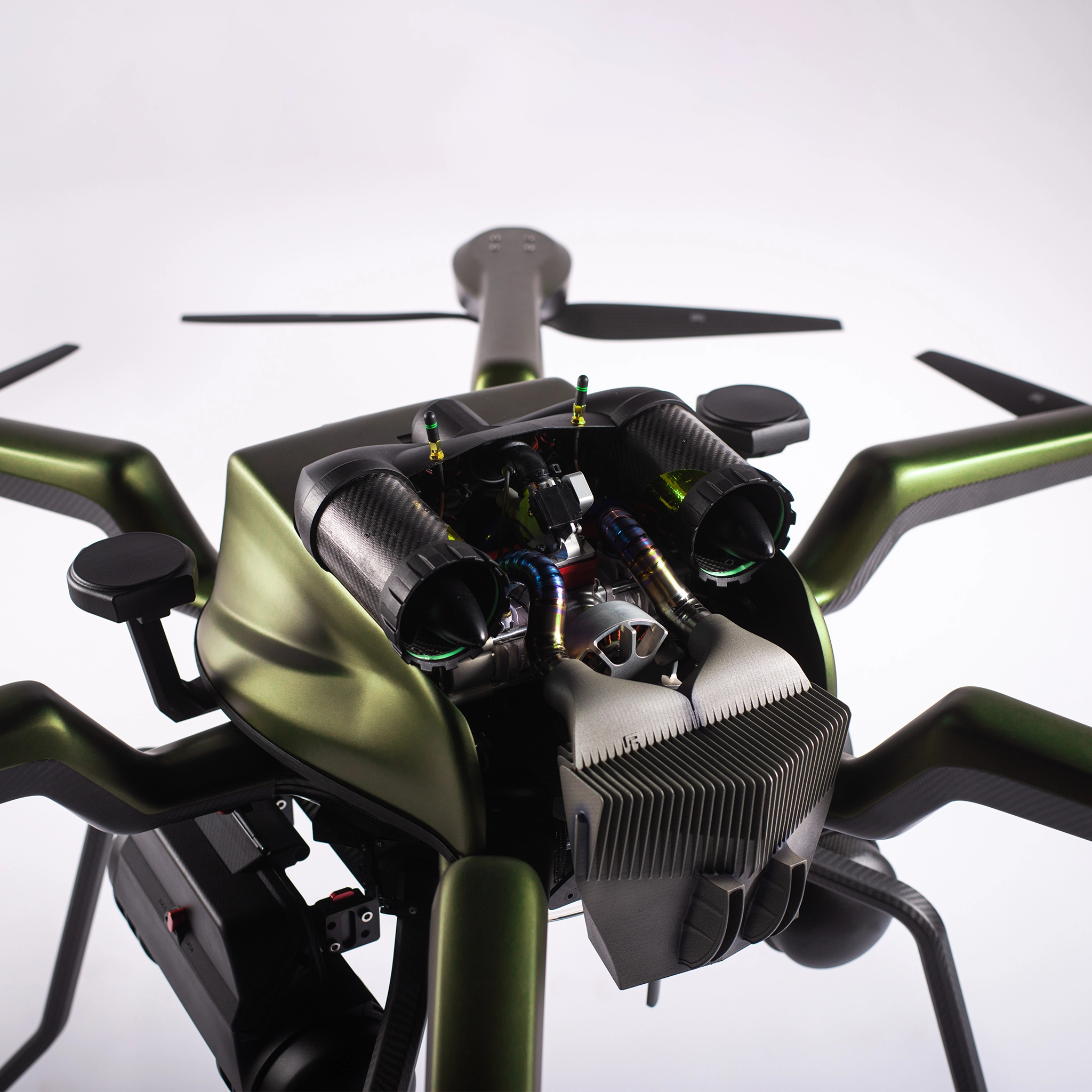Die gasbetriebene Stromversorgung von der NOA Hybrid ist ein hochintegrierter Antriebsstrang, der von einem flüssigkeitsgekühlten Generator mit einem Fernstarter angetrieben wird, der die bürstenlosen Motoren kontinuierlich mit bis zu 4000 W versorgt.