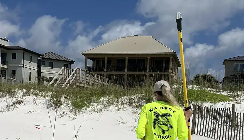 Verfolgung von Küstenerosion, Überwachung von Nistplätzen für Meeresschildkröten und Untersuchung der Lebensräume der gefährdeten Strandmaus in Escambia County in Florida.